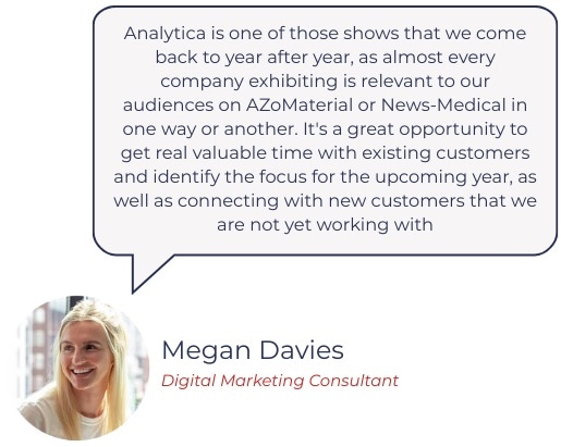 This year, the AZoNetwork team is proud to be exhibiting at Analytica 2026. We’re looking forward to connecting with the global laboratory community in Munich and helping great science get seen and understood.